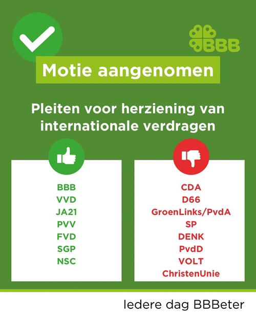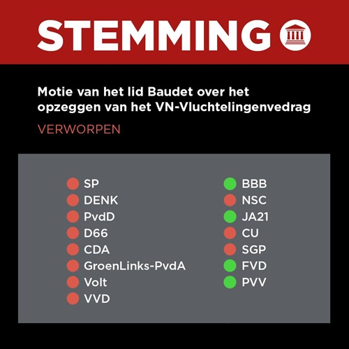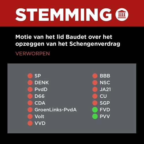 Slechts 2 partijen willen dus baas over de eigen grenzen zijn en dat Nederland zelf kan besluiten wie zij toelaat tot Nederland.