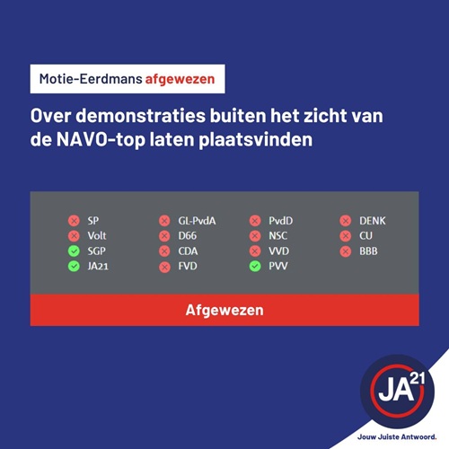 De NATO landen zijn onze bondgenoten. Demonstreren kan bijna altijd en overal, maar nu niet even daar.